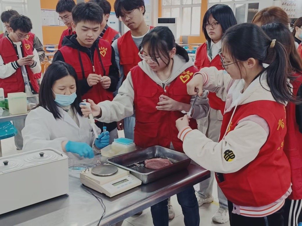 快速检测是食品安全监管人员的有利工具。在日常备菜和煮饭的区域,太阳成城集团tyc234cc古天乐师生们挑选了猪肉、蔬菜、水果、食用油和大米等,现场开始取样检测,针对农药残留、呕吐毒素、瘦肉精(盐酸克仑特罗、莱克多巴胺、沙丁胺醇)以及酸价过氧化值等进行含量测定,剪肉、稀释、滴定、水浴加热、离心、测算……同学们饶有兴趣,将专业课程所学理论应用于实践,切实地体验了一把“学以践行”,感受食品专业魅力,半小时后,各类检测结果全部显示达标。每日例行安全检查的餐饮督查员们路过,为同学们的专业实践点赞。