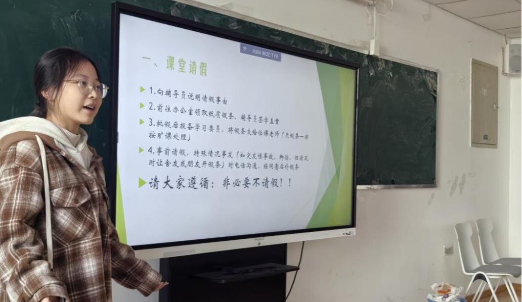 学习委员王静如详细地重申了课堂请假流程,强调“非必要不请假”,并汇报了近期的考勤数据,对于个别同学迟到、早退现象予以批评。这些问题不仅影响了自身的学习进度,也一定程度上干扰了课堂秩序,希望大家能够引以为戒,共同维护良好的学习环境。