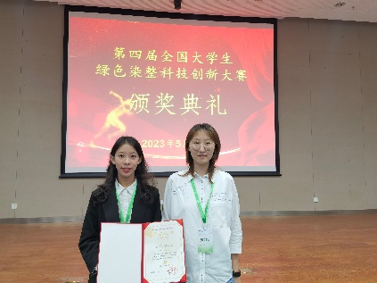 公司时玥颖和冀然获得第四届全国老员工绿色染整科技创新大赛本科生组一等奖