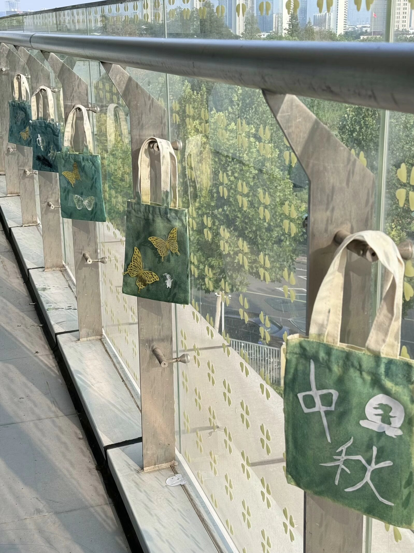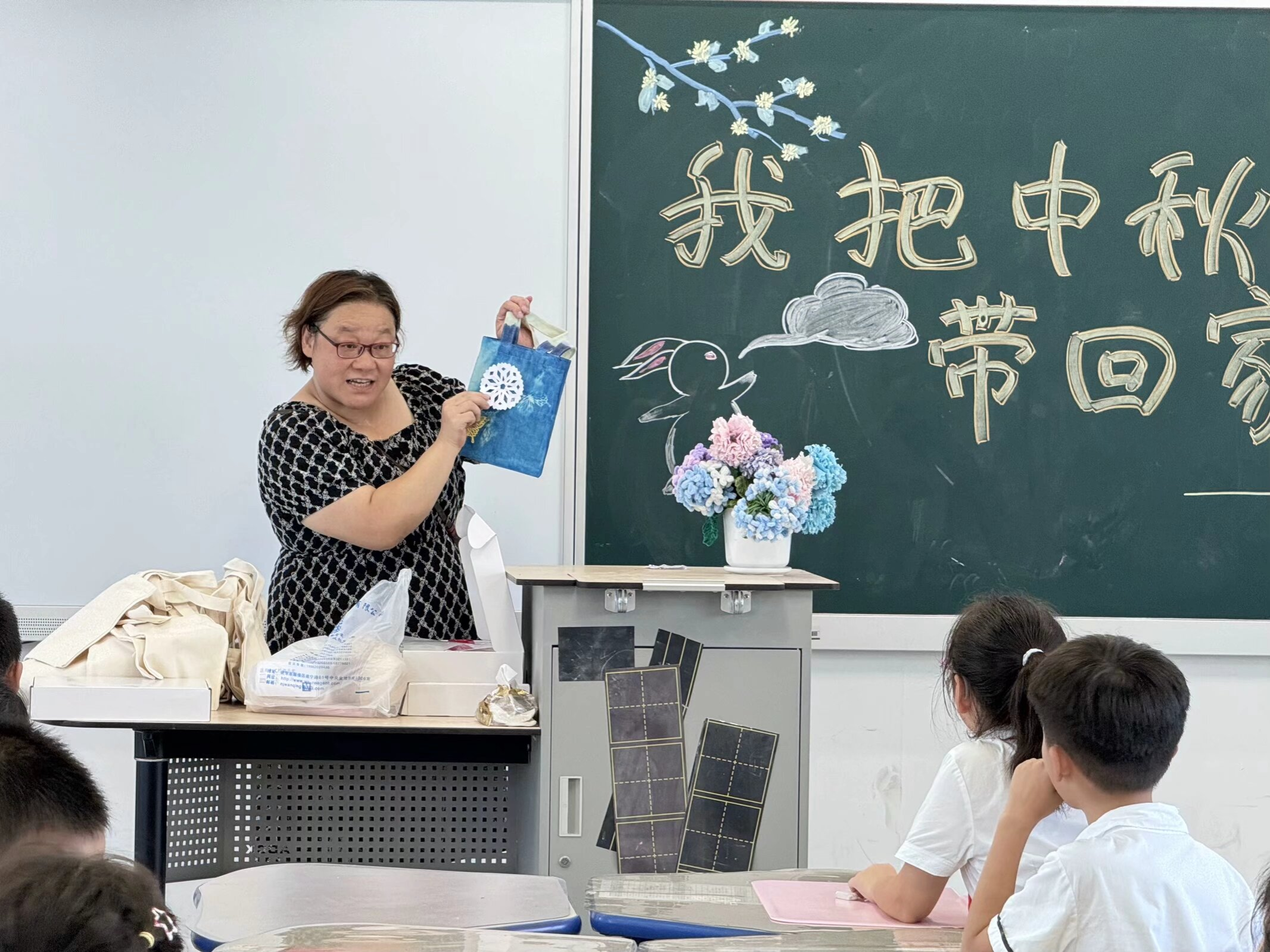 “我设计的拎包上有玉兔在月亮下吃月饼,因为我妈妈告诉我中秋节是团圆的日子,我想和家人一起分享这个特别的拎包。”一位同学自豪地说。