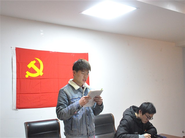 会议由蔡银莲主持,在庄严的党旗前,全体党员起立,奏国歌。首先,耿强、黄政瑜同志宣读转正申请书,向党组织汇报了在预备期内的工作、学习和生活等方面的突出表现。接着,支委会就群众座谈会了解的情况,向大家介绍了申请转正的两位同志在预备期的表现和转正公开答辩中同志们提出的综合意见,并宣读了转正答辩综合成绩和反馈结果。之后,现场熟悉他们的党员同志对他们进行评价,指出他们的优缺点,并提出对两位转正同志的改正期望。随后,会上有表决权的正式党员投票表决,一致同意申请转正的两位同志转为正式党员。两位同志就大家提出的意见和期望表明自己的态度和今后努力的方向。