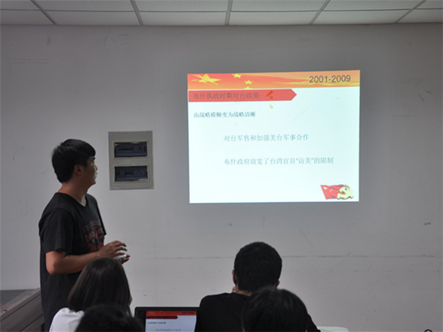 本次专题学习由时政和生活两大板块组成。时政方面,刘鑫、薛健、高阳三位同志围绕台湾问题先后向大家介绍了近代美台关系、二十一世纪以来台美关系的发展及两岸关系。刘鑫以时间为主线先后介绍了1945一1968年从“龃龉”到“蜜月”,1969一1979年从“动荡”到“断交”的美台关系。接下来薛健以2001-今的美国三位总统对台态度为基本思路,先后阐述了三位总统各执政时期对台政策、美台军事合作、台湾近代各领导人对大陆态度等相关内容。随后高阳就两岸关系形成原因、发展回顾、面临的新形势及发展展望四个方面着手讨论。书记冯晨冉就时政内容作出总结,并指出美国与中国主权问题的争端致使台湾问题的产生,只有中国早日强大,台湾才能早日回归。