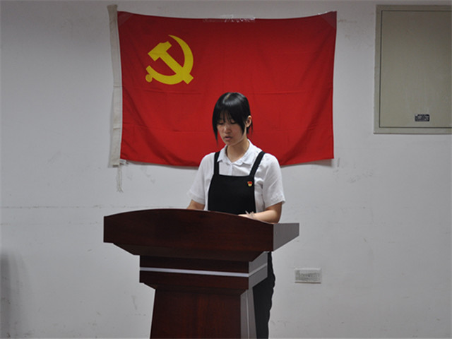 会议由冯晨冉主持,在庄严的党旗前,全体党员起立,奏国歌。首先,马雨悦、薛健、刘鑫、高阳四位同志宣读转正申请书,向党组织汇报了在预备期内的主要的优缺点、今后努力的方向及需说明的问题。接着,支委会就群众座谈会了解的情况向大家介绍了申请转正的四位同志在预备期的表现和转正公开答辩中同志们提出的综合意见并宣读了转正答辩综合成绩和反馈成果。之后,现场熟悉他们的党员同志对他们进行评价并提出对四位转正同志的改正期望。随后,现场有表决权的正式党员投票表决,一致同意申请转正同志转为正式党员。四位同志就大家提出的意见和期望表明自己的态度和今后努力的方向。