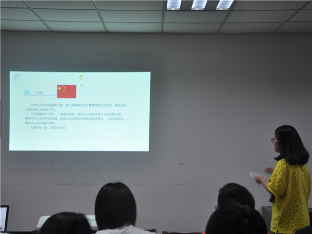 马天聪首先为我们介绍了各国选举领导人的方式,包括中国、美国、法国、韩国、日本等国家,比如:法国采取的是多数两轮投票制,英国采取的议会君主制,日本首相由执政党推选等。并结合当前国际形势分析了各国的选举现状,拓宽了大家的政治知识面。