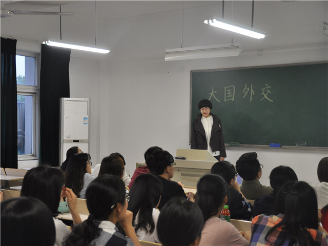 潘晶晶同志首先给大家介绍了什么是国际关系,她着重给大家介绍了中俄以及中国和巴基斯坦外交的历史,指出中国对俄国的外交已经从受压迫到亲苏时期发展到睦邻友好阶段,《中华人民共和国和俄罗斯联邦睦邻友好条约》的签署更是预示着中俄关系开启新征程。巴基斯坦是最早承认我国的国家之一,中巴关系能走到今天这么友好互助的境地是中巴人民互帮互助的结果。接着,孙光宇同志给大家介绍了中国与美日韩等国的外交,首先,他带领大家回顾了近期大事,包括地缘政治朝鲜半岛问题、中韩“萨德”问题、人民币国际化等国内外时事,介绍美国外交时,从“习特会”展开,又对德国、英国等欧洲国家与中国的关系进行了分析,最后还对东北亚外交形势进行了分析,指出东北亚现在主要是核心与分裂。紧接着,宋镜如同志就朝核问题展开介绍,她首先介绍了朝核问题的由来,然后又介绍了六方会谈,并指出朝核问题的实质是朝鲜和美国互不退让,解铃还须系铃人,所以解决朝核问题的钥匙还是掌握在朝鲜和美国的手上。武力是解决不了问题的,对话才是唯一的出路。最后提出愿望,希望不要爆发战争,不要做让自己后悔、让子孙后代遭罪的事情