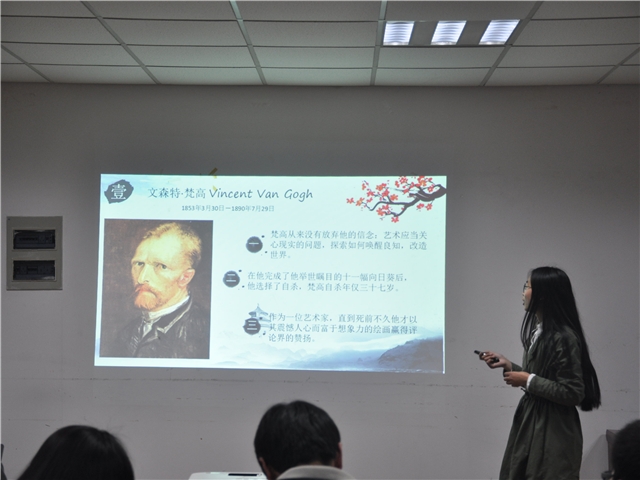 本次专题学习的内容主要是京剧的服饰之美和世界美术大师的作品赏析。首先,费珺向大家介绍京剧的服饰之美。她通过大量的京剧服饰图片,向大家展示其通用性的功能。随后,费珺着重介绍了京剧服饰中的一种——蟒袍,并向大家解释了蟒袍的特点。接着,费珺又介绍了京剧服饰的其他几种,如“靠、褶、帔、衣”等其他服饰。陶玉婷着重介绍了梵高、达芬奇、毕加索、米开朗基罗、拉斐尔这五位艺术大师的生平和作品,并通过大量的图片赏析向大家展示作者的创作背景和作品的艺术价值。两位同志的介绍令大家对艺术作品有了进一步的了解。