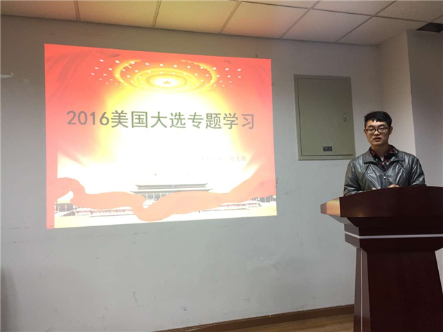 本次专题学习的内容主要是美国大选以及韩国总统“闺蜜门”新闻事件。会议伊始,王成从美国选举制度介绍了他们选举的独特之处,再着手介绍了两位候选人的事迹。他主要分析美国大众对候选人的支持情况,还从美国大选尘埃落定之后可能要做的最重要的事情以及中国即将面临的一些严峻挑战等方面进行阐述。另外,他也对美国大选之后,台湾与美国之间的关系进行了一些分析。随后,他简单介绍了韩国总统朴槿惠的“闺蜜门”事件,分析了朴槿惠的讲话意图和分享了专家学者对此事的看法。会议最后,王成认为执政党的指导思想是党的标杆,指引着党的前进方向,决定着党的自身建设。