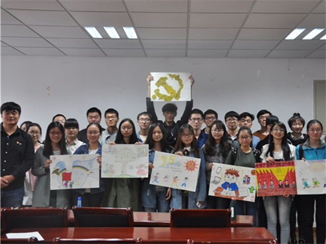 首先由薛健对活动主题进行详细的解说,使各预备党员与积极分子更加深刻地体会到活动主旨。之后以2-3人一组的形式,围绕“两学一做”、“庆祝中国共产党成立95周年”、“社会主义核心价值观”等主题进行拼图或绘画活动。潘晶晶和马雨悦通过绘画“庆祝中国共产党成立95周年”的大会现场来提醒自己,时刻谨记习近平总书记的重要讲话精神,以“不忘初心,继续前行”来要求自己。薛健和刘鑫则用树叶拼成党徽的形状,以此来体现党员身份,树立党员形象。其余小组也都积极参与其中,用手中的彩笔描绘出自己心目中的中国共产党。