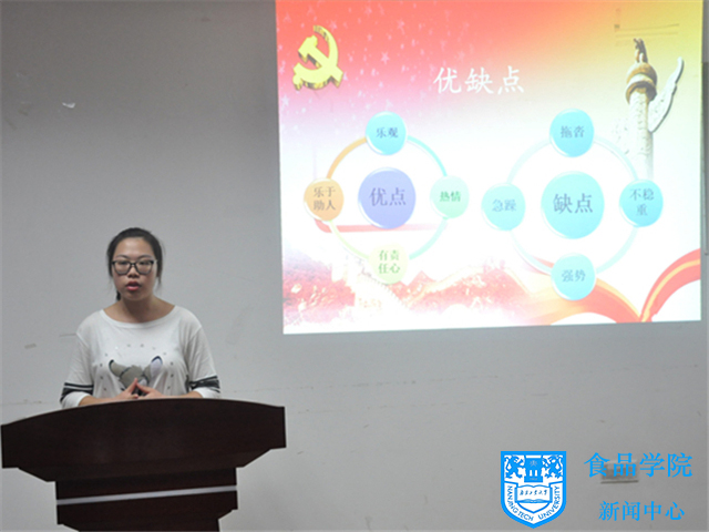 会议在严肃紧张的气氛下进行,两位同志依次对其预备期间的思想、学习、工作、生活等各方面的情况进行了汇报。王菁同志就“党员酒驾抄纪委将在全国逐步推广”的新闻从政治面貌、职业身份方面发表了自己独到的见解,阐述了自己的观点。蔡银莲同志很详细地在PPT上展示了自己一年前与现在各方面的对比,让与会党员了解到他本人在一年间的变化与进步。并就“习近平在京召开科技创新大会”从创新环境、保护和尊重创新人才等方面提出自己的看法。