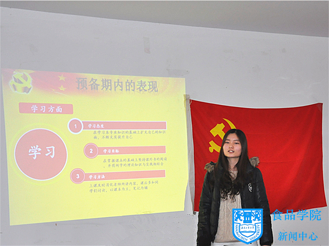 会议在严肃紧张的气氛下进行,六位同志依次对其预备期间的思想、学习、工作、生活等各方面的情况进行了汇报。宗丹同志在PPT上详细地展示了自己一年前与现在各方面的对比,让与会党员了解到她本人在一年间的变化与进步。朱秋昀沉着大方地向大家展示近一年来的变化,与发展大会相比有明显提高。其余各位同志都能很好的结合实际与理论知识进行展示。