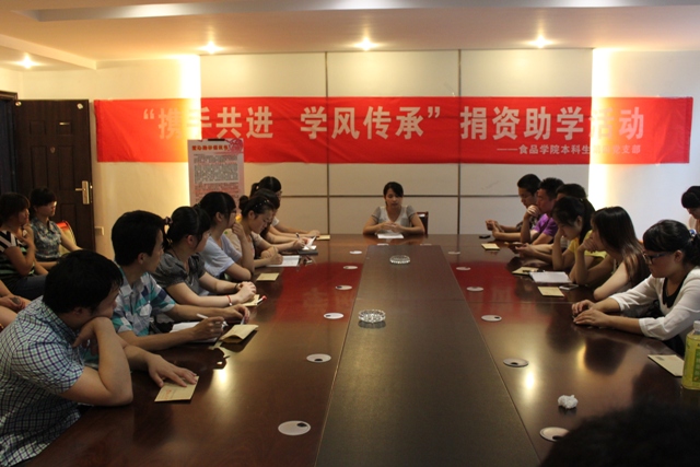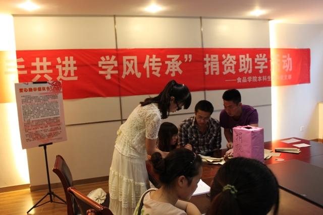 2013年6月16日,太阳成城集团tyc234cc古天乐本科生第四党支部发起的“携手共进,学风传承”捐资助学的活动正式进入最后的捐赠环节。此次活动在生工楼A2-209会议室进行,参加人员为支部所有党员、银杏基金代表刘超以及各年级各班的捐赠代表。