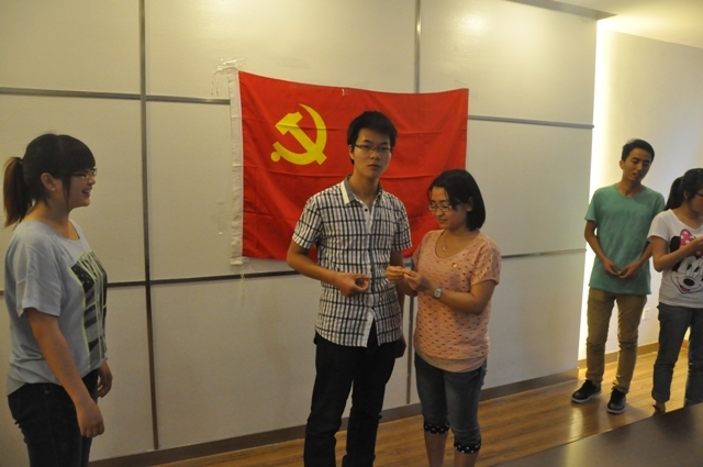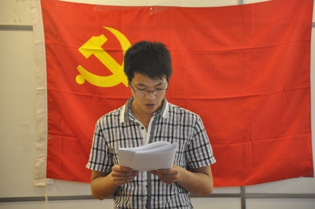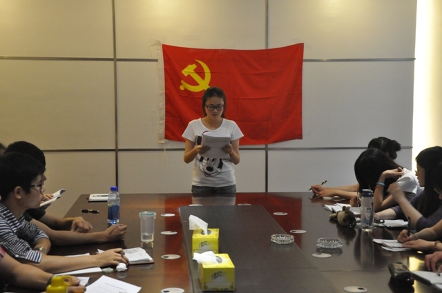 在庄严的党旗面前,全体党员同志起立,奏国歌。接着,预备党员发展大会正式开始,支部大会针对刘晓静等八名同志大学期间在各个方面的表现,就其发展为中共预备党员的申请进行充分讨论。