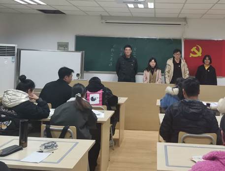 大会在庄严的国歌下拉开帷幕。大会逐个讨论了吸收魏凯、赵美玲、艾斌、唐林倩同学为预备党员的问题。与会党员对发展对象的不足之处提出意见和建议。通过投票表决,大会一致同意接收魏凯等四位同学为中共预备党员。最后,党支部书记周业群同志对新党员的加入表示欢迎,并为四位预备党员佩戴了党徽。