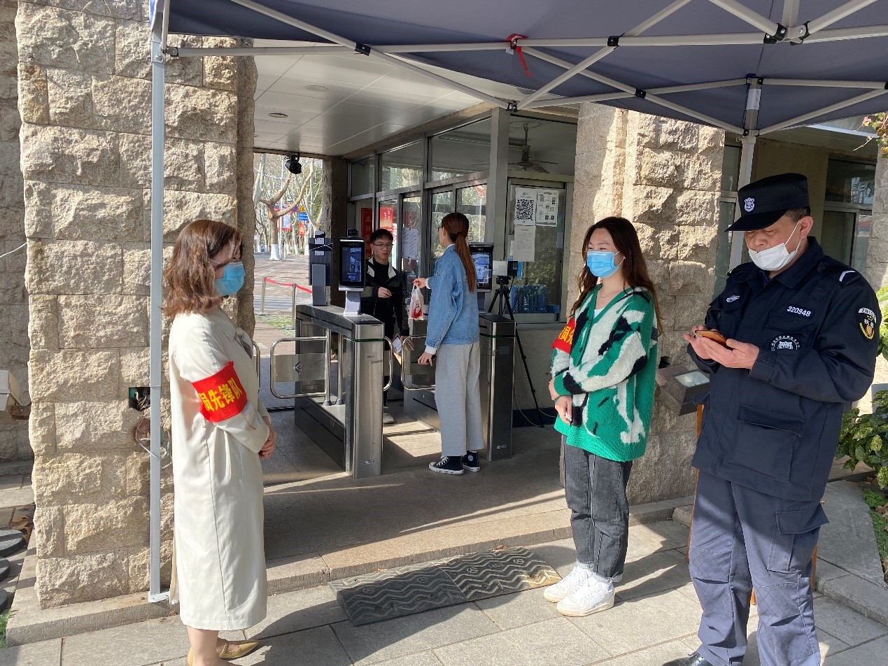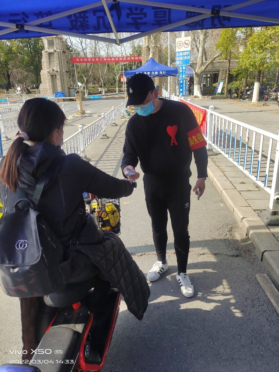下午1时至3时,支部青年教师党员来到公司东南门入口处,为校园安保人员送水解渴、进行校园防疫站岗志愿服务工作。因近日迎来延迟返校员工入校小高峰,党员同志积极配合安保人员,加入日常进出校园站岗防疫服务工作,同志们仔细逐一检查入校员工的行程码和健康码,辅助做好机动车及非机动车道进出人员体温检测工作全覆盖,对行程码、请销假状态异常者零通过、必劝返,为校园安全做好第一道保障!虽是初春,但两个小时的轮值服务下来,党员志愿者们汗流浃背,深切体会到了安保工作的不易,也对实践雷锋精神又多了一份感悟。