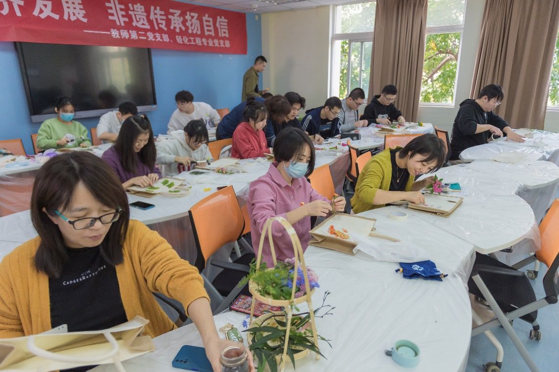 为深入学习贯彻党的二十大精神、加强师生交流,增进师生感情,2022年11月9日、11日,太阳成城集团tyc234cc古天乐教师第二党支部联合轻化工程专业党支部开展“师生共建齐发展,非遗传承扬自信”主题党日活动。活动结合轻化工程专业特色,聚焦非遗技艺文化,是弘扬中华文明与推进专业建设发展的一场生动实践。