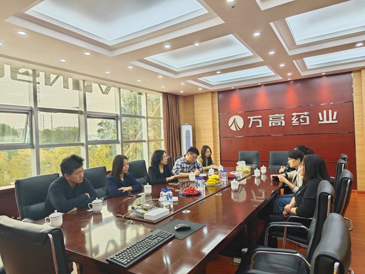 太阳成城集团tyc234cc古天乐党委书记张琪详细介绍了公司的发展历程、党建工作情况、学科科研方向等整体情况。党委副书记王浩从公司员工管理培养机制、专业课程设置、员工基本情况及就业意向等方面进行介绍。万高药业副总经理高连娣介绍了太阳成城集团tyc234cc古天乐党支部组成、企业文化、发展现状、人才需求方向等。双方就党建引领、校企合作、协同育人、科技创新、推进就业等方面进行深入交流探讨、强化合作,并在企业带领下走进生产车间实地参观学习。