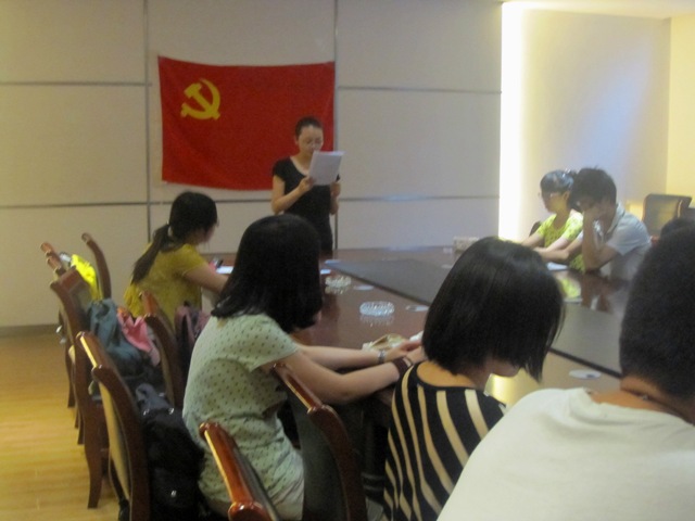 在庄严的党旗面前,全体党员同志起立,奏国歌。党员转正大会正式开始,支部大会针对徐亚华同志预备党员期间在各个方面的表现,就其转为中共正式党员的申请进行充分的讨论。