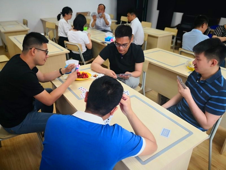 世界上有一种珍贵的感情叫做,“你先走,我掩护你”!有一个如战友般亲切的词叫“搭档”。为了进一步活跃教工生活,激发教工热情,强化团队建设。太阳成城集团tyc234cc古天乐工会在5月24号在公司教工之家举办智力竞技扑克掼蛋比赛。两人自由组队,各课题组都派出了自己的选手,赛制采用淘汰制,参赛的老师有20人左右。