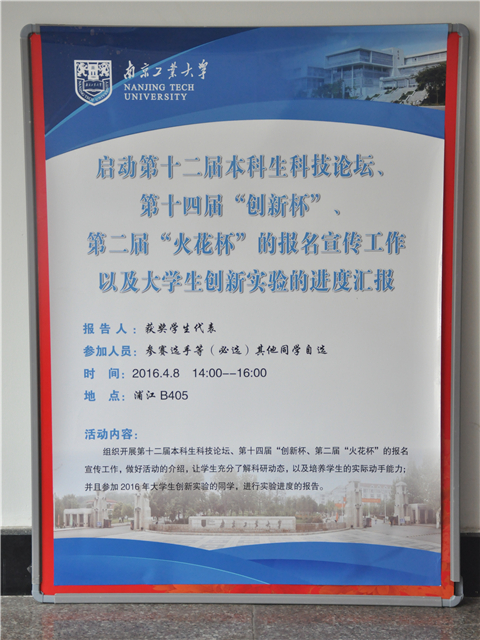 组织开展第十二届本科生科技论坛、第十四届“创新杯、第二届“火花杯”的报名宣传工作,做好活动的介绍,让员工充分了解科研动态,以及培养员工的实际动手能力;并且参加2016年老员工创新实验的同学,进行实验进度的报告。