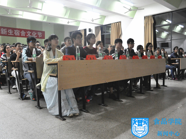 20121023 启动仪式上评委们正在认真观看宿舍文化展示,并为参赛选手们进行打分。 (食品院)