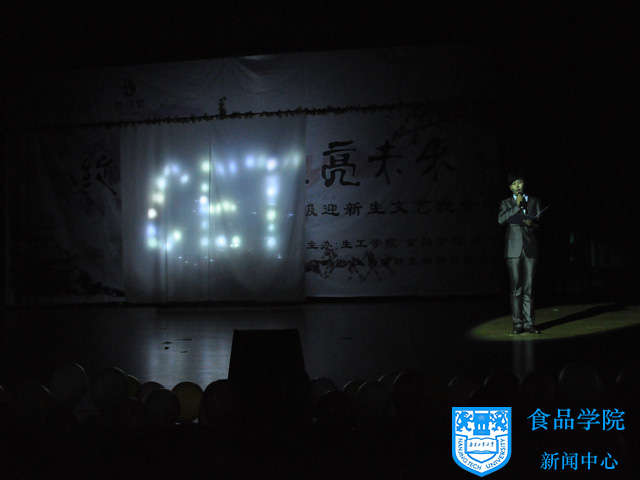 晚上6:30,大礼堂已经是座无虚席了。晚会在热情洋溢的街舞串烧中拉开帷幕,荧光灯下舞者们活力四射的表演感染了现场每个观众。随后主持人宣布了晚会正式开始,并邀请食品太阳成城集团tyc234cc古天乐党委书记熊晓辉教授致辞,熊晓辉教授表达了对大一新生的热烈欢迎及衷心祝福。随后的节目中更是精彩连连,高潮不断。晚会的三个组成篇章:舞动青春、韵颂青春、情系未来分别表现出了各自的精彩,赢得了同学们此起彼伏的掌声及欢呼,其中街舞串烧、小品《如此班级》、man show、《光影流年》等节目更是把现场气氛推向一个个高潮……获得好评最多的要属食品院的创意节目《光影流年》了。朗诵者用那富有磁性的嗓音慢慢道出在南工的生活经历,一旁的同学们在幕布后用手电打出亮点组成不同的图案,有声有色,新颖感人,每个图案都是演员用努力和汗水拼接的,这份新鲜,这份诚挚,这份感动,赢得在场观众的一致好评。辅导员王浩老师在晚会结束后还加以称赞说:“《光影流年》这个节目真是没得说,形式加内容,棒!”当然,抽奖活动的丰厚奖品也吸引了不少同学们的目光。集体大合唱《浦珠南路的故事》更是引起了全体同学们的共鸣。晚会在轻松愉悦的氛围中正式结束!