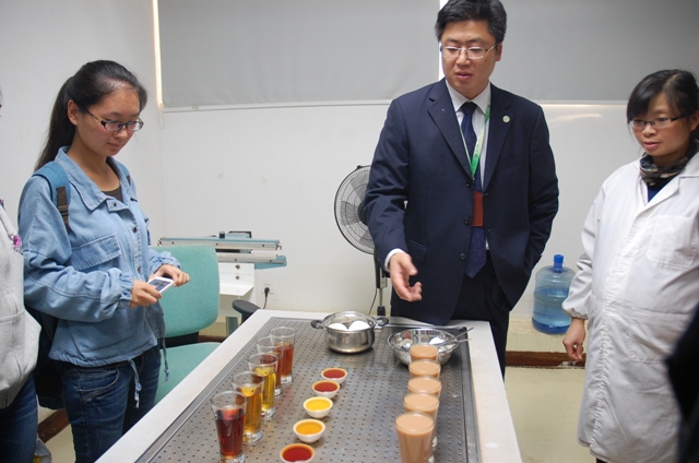 在老师的组织及公司工作人员的安排下,同学们有序地参观南京融点科技有限公司。南京融点科技有限公司邵增琅副总经理为大家介绍了公司的发展历程,基本情况,以及公司产品工艺流程和主要产品。同学们了解到该公司是太谷集团与大闽集团合作投资的港资企业,专业生产速溶茶粉、各种植物提取物及冷冻干燥蔬菜、肉类水产品等,是可口可乐公司、百事可乐公司、雀巢公司、立顿公司等企业的重要供货商。随后,负责人又带领同学们参观了企业的生产流程线,参观过程中为同学们细致地讲解,让大家对产品工艺流程有更为直观的认识和理解。期间,同学们认真听讲并积极提问。看完生产设备后,同学们又参观了检验分析室,仔细观察工作人员做实验,了解实验室的基本操作,并品尝了公司所准备的由原产品制成的饮料。