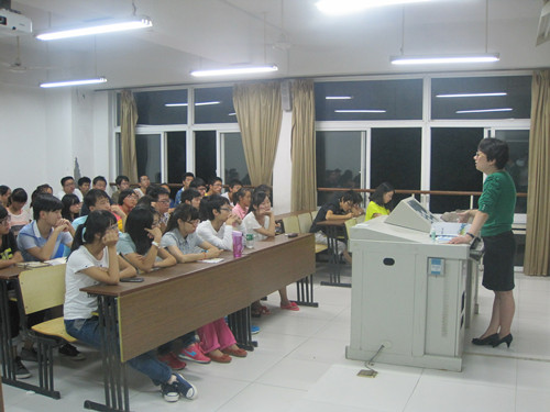 会议开始,每位同学逐个上台进行了自我介绍,在众多新同学面前,同学们勇敢的说出自己的兴趣爱好,自己对大学新生活的展望以及对未来的期待。而三位老师则分别从学习、生活、专业三个方面进行讲解与阐述。学习方面,江凌老师特别指出在大公司园学习,最重要的是态度。大学主要是靠自己,没人督促,自己得自觉,不懂得要及时向同学老师询问。而迟波老师则在生活方面提出很多建议,他指出,老员工活,首屈一指的是人际交往,要多与学长学姐交流,认识更多的人,拓展自己的人脉,那样的话,办起事来会方便很多。同学们认真的听完前两位老师的指导后,又迎来陈晓晔副书记对专业的介绍。陈老师从各个方面对食品和轻化进行全方位的解析,不但指出专业的发展前景,而且对大家较为关心的就业问题进行了解答,让大家更加放心的加入到今后的学习生活中。