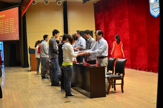 大会在雄浑的国歌中拉开了帷幕。首先,由林琳董事长,梁硕彦副董事长,潘运军副处长,姚军教授,汪海波教授,陈晓晔副书记宣读了关于“奥普莱奖学金”、“东方海华励志奖学金”、“经理奖学金”“学习标兵”、“优秀员工干部”、“三好员工”及其他奖项的表彰决定及表彰名单。宣读完获奖名单之后,伴随着振奋人心的音乐声,获奖集体代表及个人依次上台领奖。随后,六位获奖员工代表以不同的主题进行了先进集体和先进个人的事迹展示。会议的最后,由徐虹经理发表讲话。首先她代表全体师生向奥普莱和东方海华这两个单位表示由衷的感谢,接着再对获奖的先进集体和先进个人表示祝贺,同时也向同学们提出了自己的建议,她希望全体同学们都能够提升思想道德修养,锤炼自身品格,健全自身人格。徐虹经理精彩的发言博得了全体师生热烈的掌声。