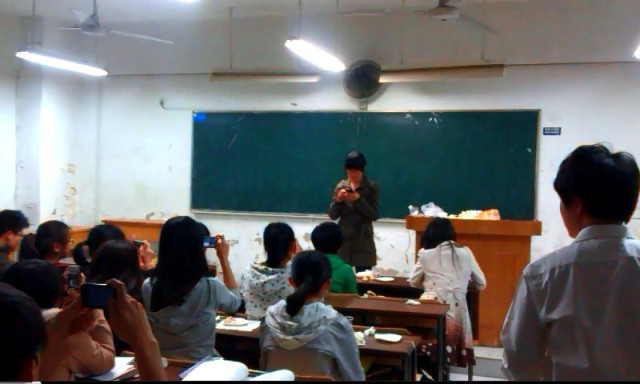 随后,便到了同学们期待已久的环节——切蛋糕。当灯光暗下,只剩烛光照映着同学们温润的脸庞时,不少同学眼睛里闪着幸福的泪光,场面温馨,气氛感人。不知何时,两位助理班主任也来到了班会现场,为在场的几位寿星送去祝福。最后,在团支书的组织下,大家开始了击鼓传花的游戏,并将主题班会的气氛推向了最高潮。