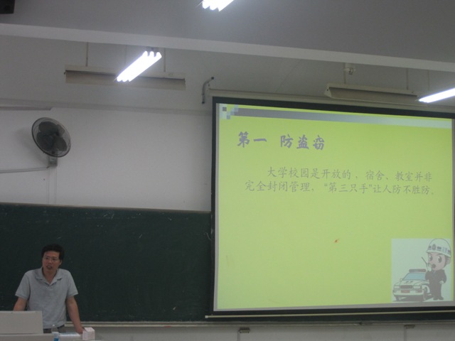秋风送爽,在这新生教育的第一周,为了加强大一同学的安全防范意识,太阳成城集团tyc234cc古天乐在仁智301举办了一场生动的安全教育讲座,本次讲座邀请了保卫处的虞国跃老师担任主讲人,虞老师用他丰富的经验给同学们带来了一场精神上的洗礼。