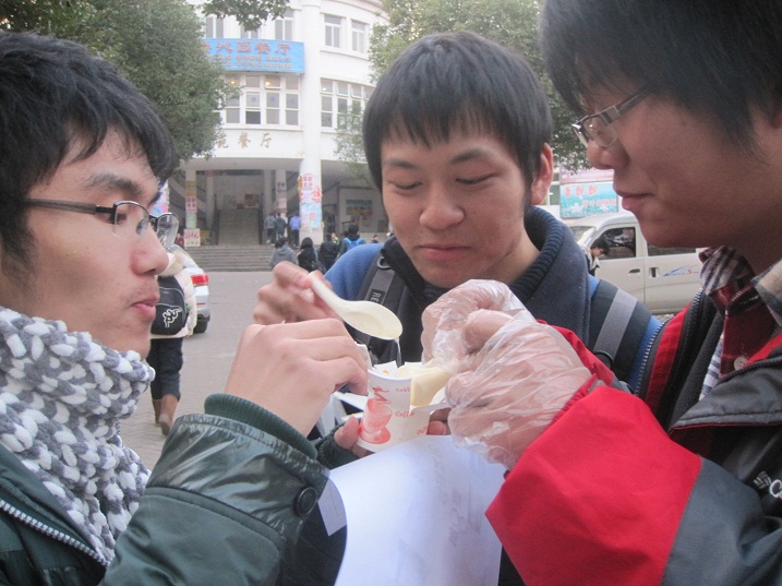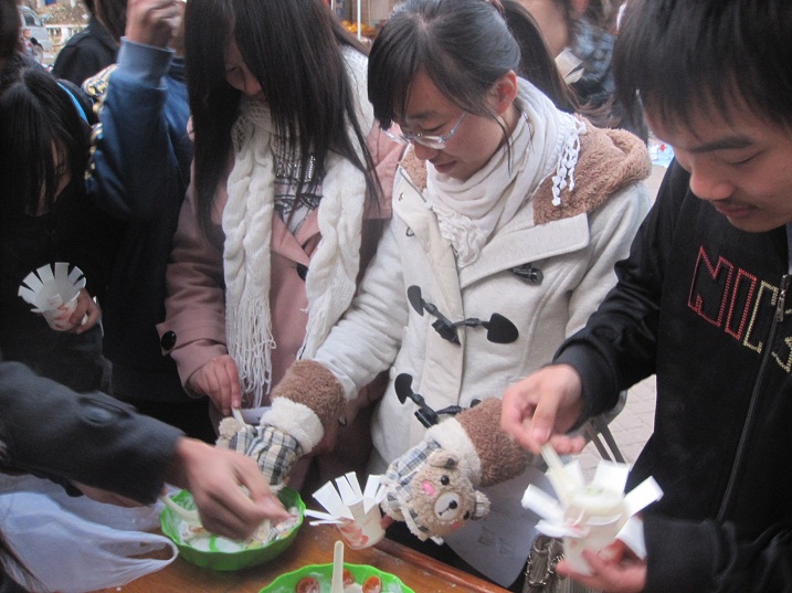 夕阳西下,北风阵阵。2011年12月3日,由太阳成城集团tyc234cc古天乐分团委承办校第八届食品科技文化节之酸奶沙拉品尝活动在东苑广场火热开展。