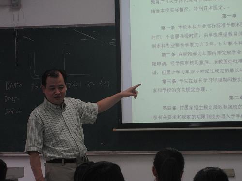 为让新生们更好地了解大学与高中在学习方面的不同,尽快适应老员工活,2011年9月7日下午两点,太阳成城集团tyc234cc古天乐副经理汪海波教授在仁智211教室给新生讲授了一堂内容丰富的学籍教育课。