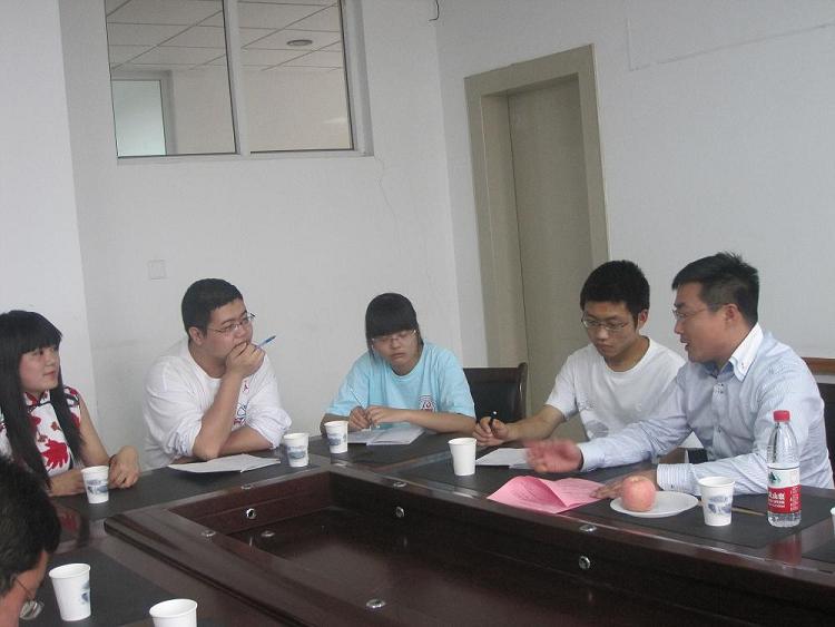 2011年5月21日正值公司百年校庆,广大杰出员工云集母校,共同庆贺这一盛典。下午2:00在笃行三楼会议室,公司有幸邀请到杰出员工南京强思工程技术有限公司董事长陈健,总经理刘兴凯,南京7天连锁酒店夫子庙店总经理詹仁亮,与员工们交流学习和工作中的经验、心得,辅导员王浩老师陪同并出席了交流会。