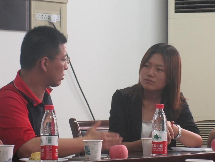 在轻松而热烈的气氛中交流会正式开始,首先由三位员工进行自我介绍,他们幽默风趣的话语拉近了与同学们之间的距离。在这面对面的交流会上,陈健员工结合自身工作的经历,告诫在座的同学,在学习和工作中必须积累经验并进行反思总结,这也是每一个成功人士所应具备的素质。此外,需要坚信地球是圆的,坎坷后面是成功,风雨之后总会遇见彩虹。刘兴凯员工指出团队协作与人脉关系的重要性,在校老员工应具备与人交往和沟通的能力,要褪去锐气,积极投入到集体当中去,认真做好在集体中的每一件事。他们富有激情而充满哲理的讲话充分调动了同学们的积极性,感染了在座的每位同学。许多同学们就自身存在的问题与困惑向三位员工提问,现场的气氛相当激烈。针对同学们提出的问题,三位员工或结合自己经历,或援引一件典型案例,一一提出了自己的看法与建议。他们用自身的经历告诉同学们积累经验的重要性,想要获得成功,就要精益求精,就要学会思考,形成自己独特的思维方式,这样才能在这个竞争激烈的社会占有一席之地。