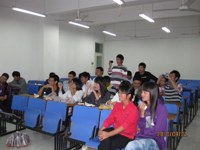 9月22号,是2010级新生迈入大学的第一个中秋节。这天晚上,食品1001班的全体员工汇聚在仁智212,和院员工会主席及助理班主任一起欢庆中秋,一个属于他们自己的中秋节。