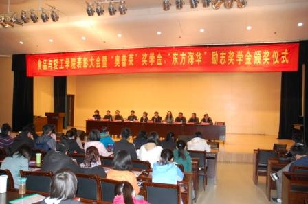 “奥普莱”奖学金获奖员工代表轻化0703班沈静、“东方海华”励志奖学金获奖代表食品0801班任心怡两位同学在发言中感谢镇江东方、江苏奥普莱两个公司对公司员工的关心和厚爱,并且表示今后要把奖励化为动力,更加严格要求自己,努力学习,不辜负公司和企业的期望。“三好优干”员工代表轻化0701班贾儒同学表示要牢记“先做一个人,再做一个有学问的人”,认真学习,努力做好每一件事,不辜负公司和老师的培养。