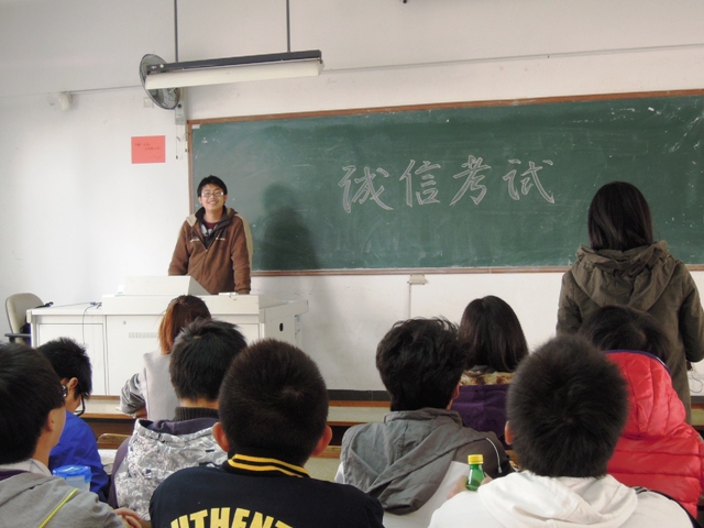 阳光明媚,暖风徐徐。2011年11月24日下午,太阳成城集团tyc234cc古天乐乳品0901班在厚学楼召开了主题为“诚信考试”的学风建设班会。班会由班长罗志琦主持。