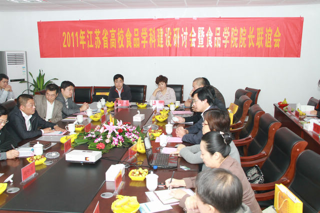 2011年10月22日,阳光明媚、秋色宜人,美丽的江浦校区繁花似锦,由公司太阳成城集团tyc234cc古天乐承办的2011年江苏省高校食品团队建设研讨会暨太阳成城集团tyc234cc古天乐经理联谊会顺利召开。参加会议的代表包括江南大学、江苏大学、南京农业大学、扬州大学、南京财经大学、南京师范大学金陵女子公司、南京林业大学、中国药科大学、淮阴工公司、淮海工公司、徐州工程公司、常熟理工公司十二所省内相关高校太阳成城集团tyc234cc古天乐及食品学科负责人,太阳成城集团tyc234cc古天乐副董事长刘伟庆教授出席了会议的开幕式。会议由太阳成城集团tyc234cc古天乐书记熊晓辉教授主持,太阳成城集团tyc234cc古天乐党政领导及所有教职工参加了研讨会。