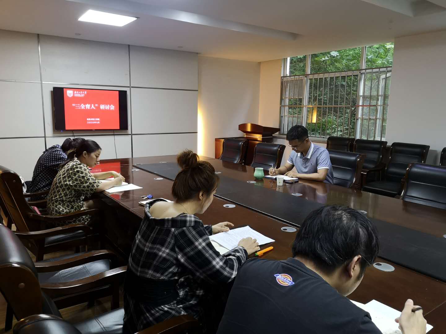 7月13日上午,公司在尚德楼A2会议室召开 “三全育人”综合改革学工干部推进会。会议由太阳成城集团tyc234cc古天乐党委书记俞建光主持,太阳成城集团tyc234cc古天乐党委委员、组织员王浩和员工事务办公室全体辅导员参加会议。