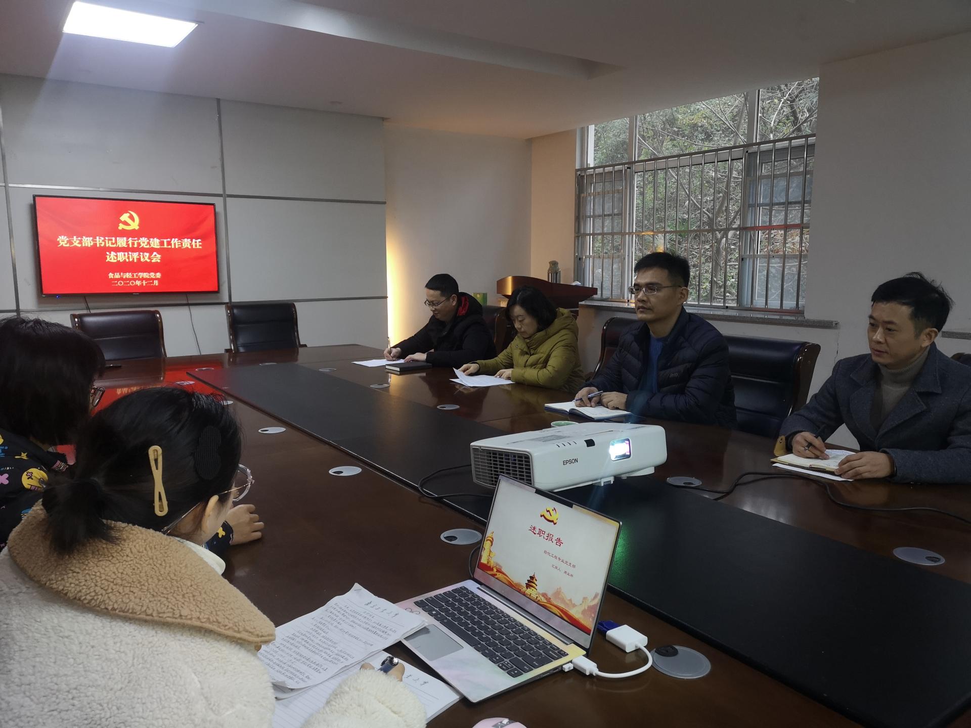 党支部述职评议考核是为了全面提升党支部组织力,全面促进党支部和师生党员发挥作用。各党支部分别从支部建设情况、日常工作、特色党建活动、存在的问题等方面总结了引领师生推动中心工作和重点任务情况。各党支部的汇报内容丰富,各有特色。教师第一党支部结合专业、连续三年开展服务校园食品安全系列党日活动、教师第二党支部与轻化工程专业党支部师生共建模式受到了大家的好评。