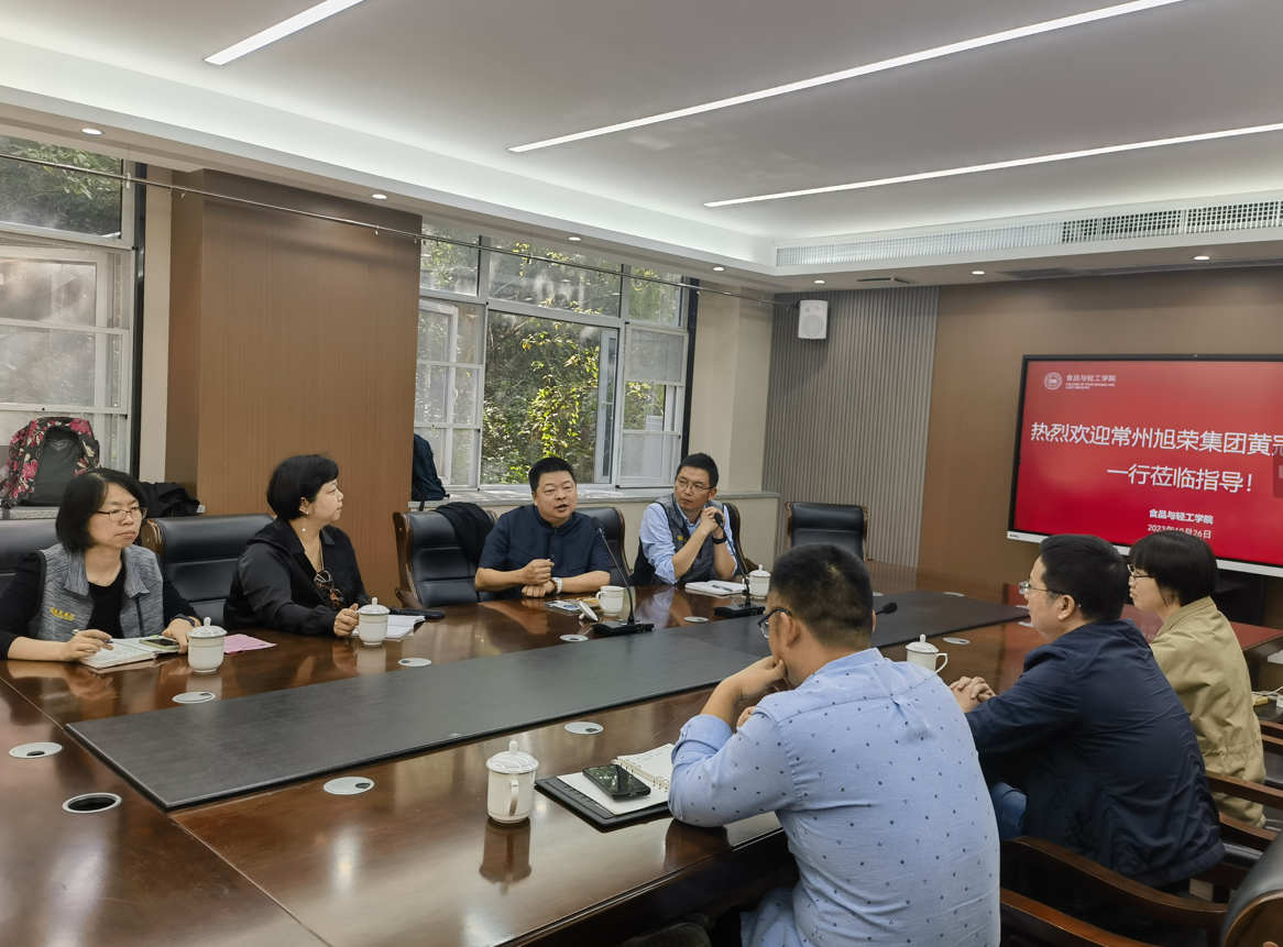 10月26日,旭荣集团执行董事黄冠华先生、人力资源协理欧芳君女士、常州旭荣行政暨产销副总顾孝夫先生、常州旭荣人事副理刘群女士及常州旭荣人事主管丁兰萍女士一行来公司调研交流,公司王国伟教授、孙戒教授、王翠娥副教授参加座谈交流。