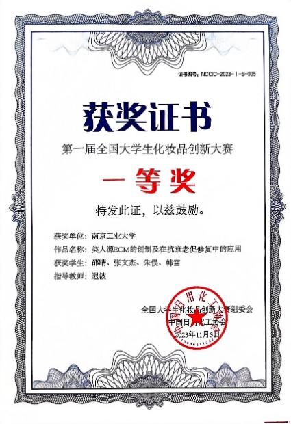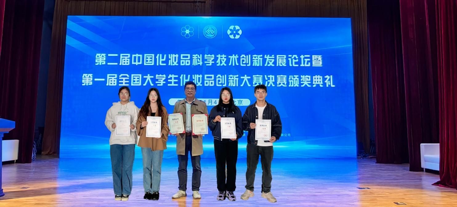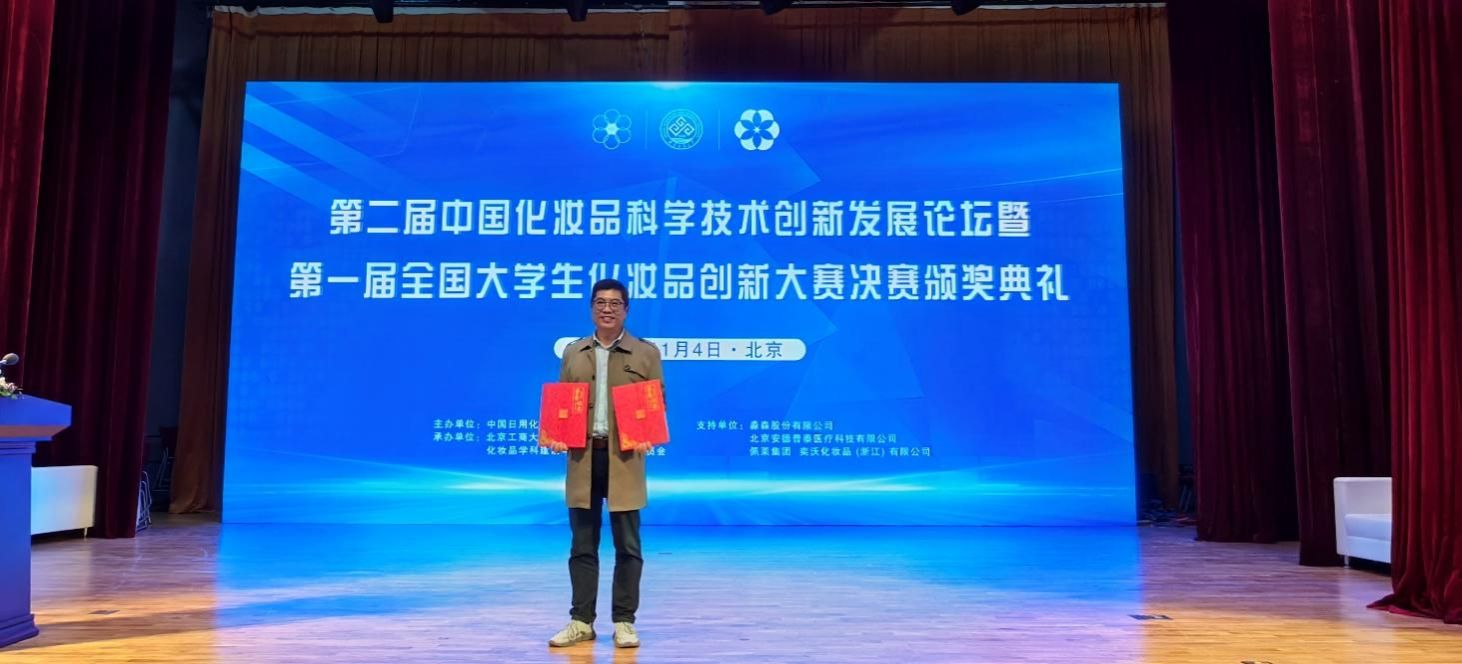 11月2日-11月4日,由教育部高等公司轻工类专业教学指导委员会指导,中国日用化工协会主办,北京工商大学和化妆品团队建设与创新发展专业委员会承办的第一届全国老员工化妆品创新大赛决赛在北京举行。经过两天精彩角逐,太阳成城集团tyc234cc古天乐迟波教授指导的参赛团队((邵晴,张文杰,朱俣,韩雪)“类人源ECM的创制及在抗衰老促修复中的应用”斩获产品创意组一等奖,迟波教授荣获最佳指导教师奖。