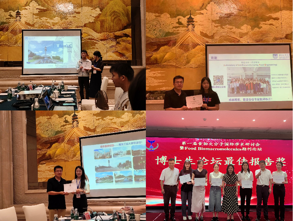 在此次会议中,江凌教授作了题为“硫化铁纳米酶级联催化体系的构建及应用”的报告,并在30日晚举行的颁奖晚宴上被Food Frontiers期刊聘为副主编。6月30日下午,江凌教授团队的张莉铃博士后在主会场作了题为“Design of Complex W/O/W Emulsion for Salt Reduction in High-moisture Foods”的汇报。在研究生论坛中,团队的博士生曹少攀、孙盛苗和陈昱金分别汇报了各自的课题进展。值得一提的是,陈昱金同学获得博士生论坛最佳报告奖。