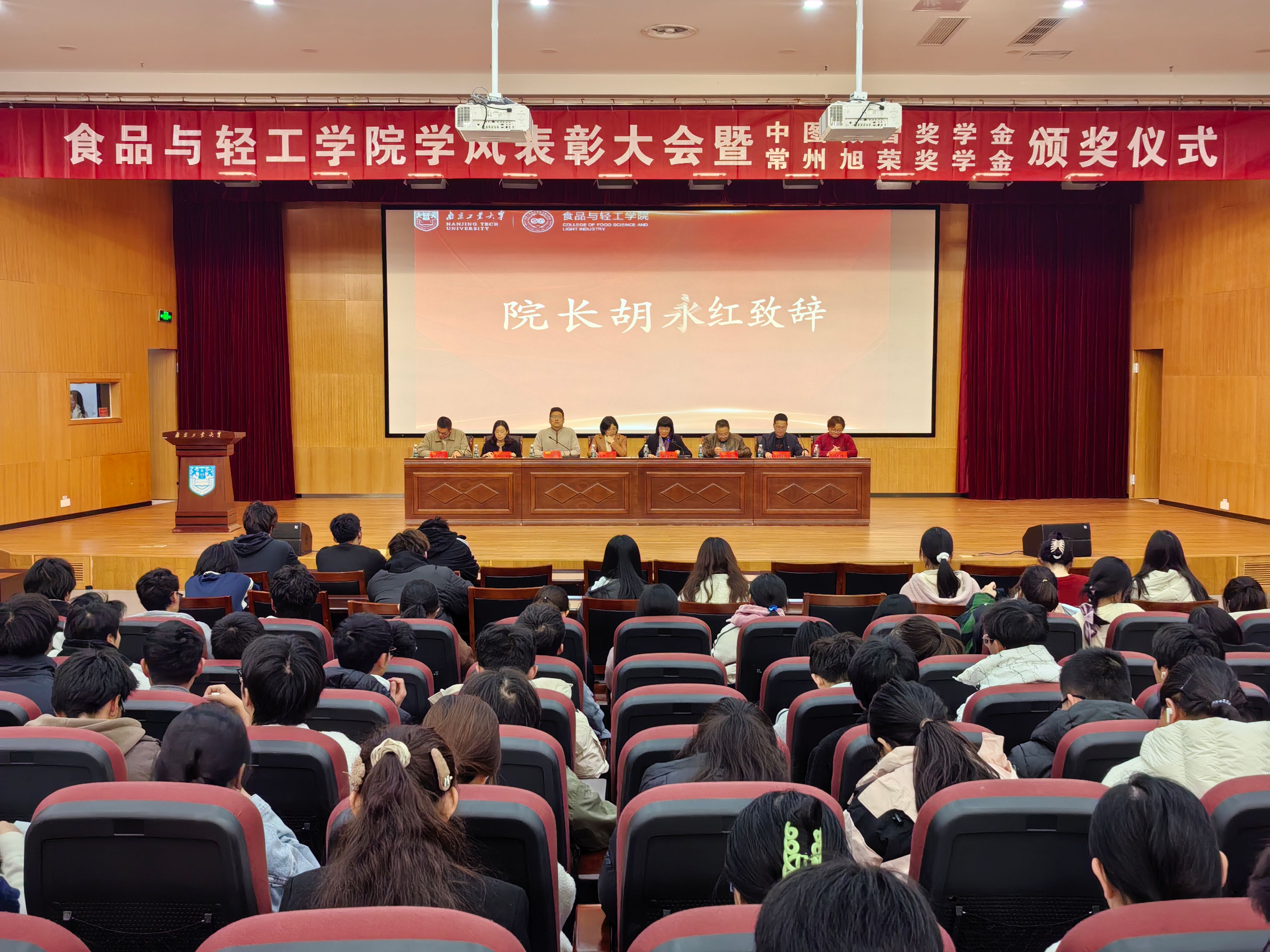 2023-204学年先进班级代表、食安2301班邓煜茹、中图数智奖学金获奖代表、轻化2101班郑清清、常州旭荣奖学金获奖代表、轻化2202班周孙琪分别发言,分享了自己在学习、生活中的心得体会和成功经验。